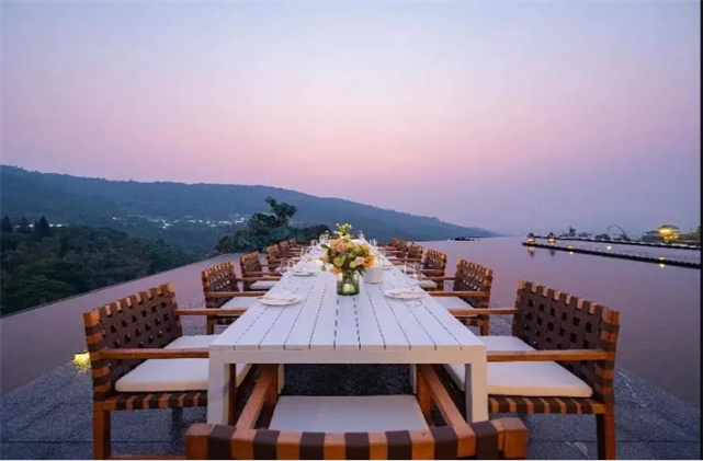 5層高的白色小屋背山面溪谷,綠蔭環(huán)繞、遺世獨(dú)立。一進(jìn)大堂就是匠廬一貫的文藝調(diào)性,客房用白色打造簡(jiǎn)約風(fēng)。木質(zhì)的溫暖、褐色的清麗與室外綠意相映成趣。每間房都有不同的賞景方式,露臺(tái)的無(wú)邊水池能販賣(mài)日出日落和滿(mǎn)天星辰。
